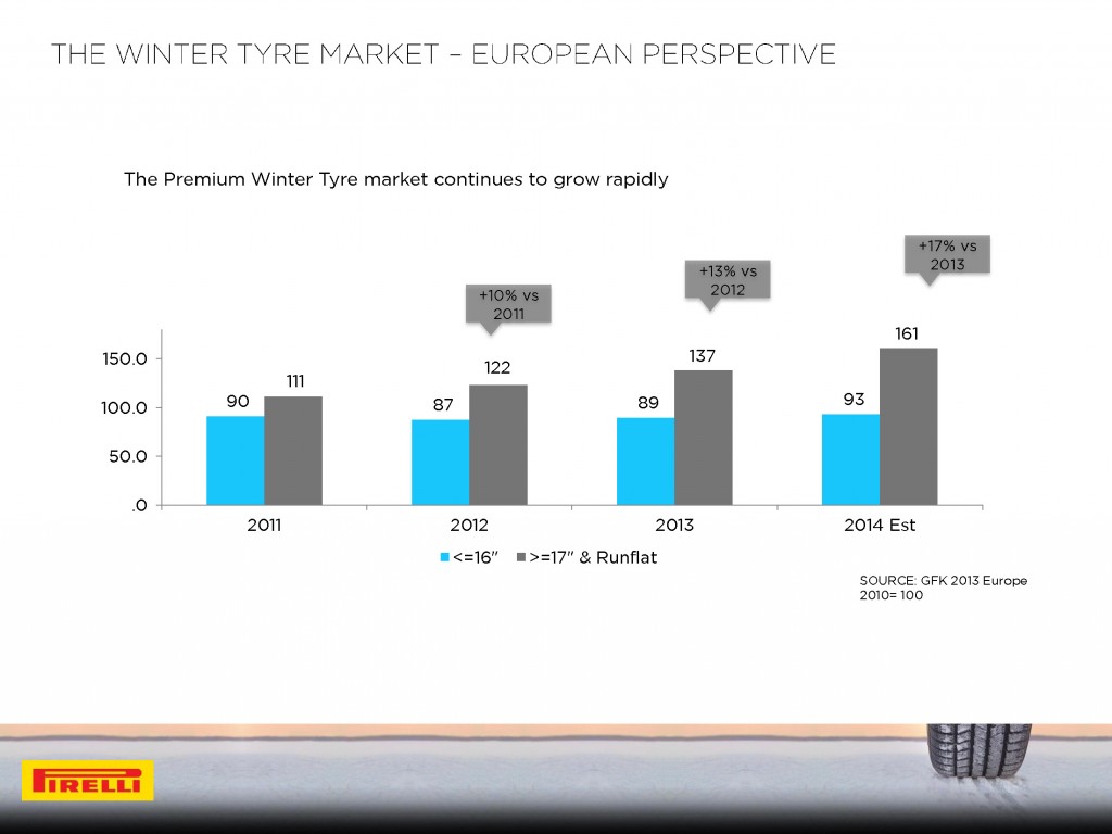 Nell’ultimo decennio, il mercato europeo dei pneumatici invernali ha registrato una crescita significativa, spinto soprattutto dalle legislazioni, ma anche dalla maggior sicurezza che viene garantita dal montaggio di pneumatici di questo tipo. Pirelli, leader nel segmento premium, investe grandi risorse nello sviluppare, distribuire e comunicare i benefici dei pneumatici invernali. Ad esempio, la casa italiana ha organizzato una serie di eventi all’inizio di questa estate, al fine di spiegare e dimostrare i vantaggi dei pneumatici invernali a clienti e partner.