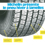 Già negli anni ‘30, l’azienda stava lavorando a un’idea per migliorare l’aderenza sul bagnato: le lamelle. Applicata da principio ai pneumatici estivi Michelin Stop nel 1934, Michelin Pilot nel 1937 e Michelin X nel 1949, questa nuova tecnologia è quindi declinata anche sui pneumatici invernali, con il lancio del modello Michelin Xh nel 1967. Questo pneumatico radiale poteva affrontare neve e ghiaccio, ma anche strade asciutte e bagnate. Le scanalature erano intagliate e presentavano ampi solchi per facilitare l’evacuazione della neve e i tasselli della parte centrale del battistrada aumentavano l’aderenza. Il modello Michelin Xh era così in grado di rispondere ai fattori contrastanti che influiscono sulla tenuta di strada in inverno.