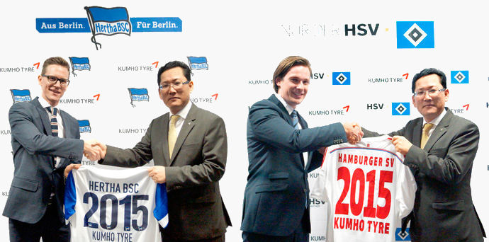 Recentemente Kumho ha firmato un accordo di sponsorizzazione con la squadra di calcio tedesca FC Schalke 04, che compete in Bundesliga, la nostra Serie A, e in Champions League, assicurandosi una grande visibilità. Durante la settimana scorsa, Kumho è diventata partner di pneumatici di altri due club tedeschi, l’Hamburger SV e l’Hertha BSC, che saranno sponsorizzati dal produttore di pneumatici fino alla fine della stagione 2016/17.