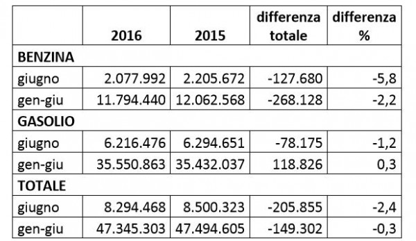 Nel solo mese di giugno le emissioni di CO2 da benzina e gasolio sono calate del 2,4% rispetto allo stesso mese dello scorso anno. In diminuzione sia le emissioni da benzina (-5,8%) sia quelle da gasolio (-1,2%).