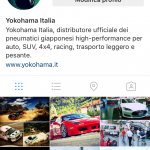 Dato il forte potere evocativo ed emozionale delle immagini e dei video di auto quando raccontano ad esempio avventure del Motorsport o mostrano novità sui test di prodotto e veicoli ad alte prestazioni, Yokohama Italia ha deciso di sfruttare al meglio Instagram postando tutti gli scatti più significativi in grado di rappresentare al meglio il marchio attraverso le sue numerose attività.