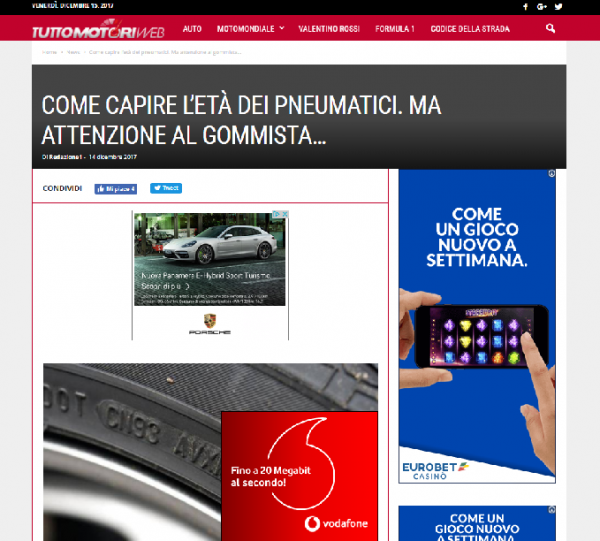 Di seguito le parole esatte che utilizza Tuttomotoriweb, portale che si definisce un “web-journal dedicato al mondo dei motori a 360°”, in un post pubblicato il 14 dicembre per spiegare cosa è il DOT: “Quando si cambiano le gomme alla propria auto c’è sempre il presentimento di essere raggirati dal gommista cui ci rivolgiamo. Ma conoscendo alcuni piccoli segreti potremmo evitare “fregature “colossali'”.