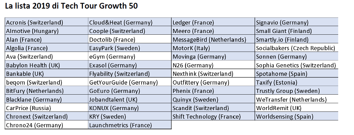 La selezione delle aziende incluse nel Tech Tour Growth 50 è il risultato di un anno di studio e di analisi realizzate da Tech Tour, community che opera per promuovere le relazioni più strategiche tra aziende tecnologiche in forte crescita ed investitori. Quest’anno, nel dettaglio, Tech Tour ha monitorato e valutato – con il supporto di un comitato selezionatore composto da investitori internazionali – oltre 300 aziende tecnologiche europee di valutazione inferiore al miliardo di dollari. Il comitato ne ha analizzato le prospettive di crescita, l’impatto sul mercato e le traiettorie dei percorsi di sviluppo.