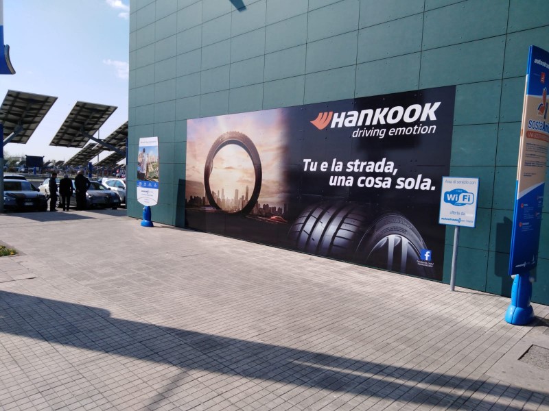 Dal 1 aprile al 31 maggio 2019 prosegue l’evento di comunicazione ad alto impatto visivo di Hankook: la Domination di tre aree di servizio ubicate su tratte autostradali in concessione ad Autostrade per l’Italia, tra le principali a livello nazionale per i flussi di veicoli giornalieri – Brianza nord ad Agrate, sull’autostrada A4 Milano Venezia, La Pioppa ovest a Bologna e Casilina Est a Napoli. Grazie alla collaborazione di Ad Moving, concessionaria esclusiva dei mezzi pubblicitari di Autostrade per l’Italia Spa, di Autogrill e My Chef, operatori della ristorazione autostradale a livello nazionale, il marchio Hankook diventa protagonista del contesto, all’esterno ed all’interno delle tre aree di servizio, con formati tradizionali e innovativi per 703 mq complessivi di esposizione.