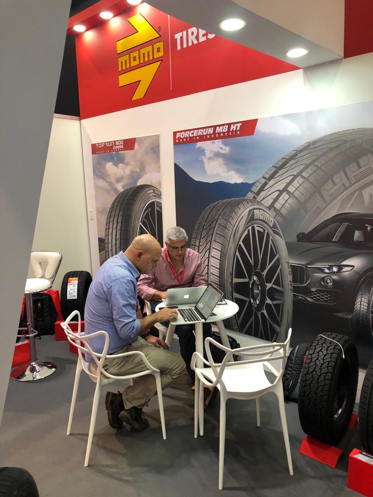 Anche quest’anno l’affluenza allo stand Momo ha confermato il forte interesse per il marchio italiano. I responsabili Momo Tires per Sud e Centro America, Omar Calvo e Victor Ojeda, hanno potuto presentare i nuovi prodotti 2019 made in Indonesia, sia AT che HT, che hanno suscitato forte interesse soprattutto per i disegni e le misure particolarmente interessanti per il mercato in questione.