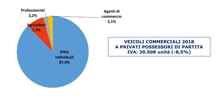 scorso anno gli stessi hanno acquistato 30.508 veicoli commerciali, in calo dell’8,5% rispetto ai 33.331 dell’anno precedente. Nel dettaglio, le ditte individuali hanno coperto circa l’88% degli acquisti, gli agricoltori il 7,7%, i professionisti il 2,2% e il 2,1% gli agenti di commercio.