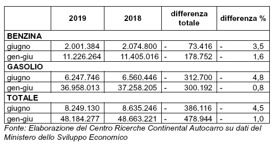 Da gennaio a giugno 2019 le emissioni di CO2 derivate dall’uso di benzina e gasolio per autotrazione sono diminuite di 478.944 tonnellate, che corrispondono all’1% in meno rispetto allo stesso periodo dello scorso anno. Nel solo mese di giugno la diminuzione è stata pari al 4,5%. Questi dati derivano da un’elaborazione del Centro Ricerche Continental Autocarro sulla base dei dati diffusi dal Ministero dello Sviluppo Economico sui consumi di carburante.