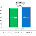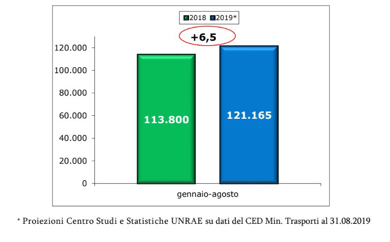 15.267 unità (rispetto alle 14.689 dello stesso mese 2018) e del 6,7% con 9.458 veicoli (verso gli 8.864 dell’agosto 2018).