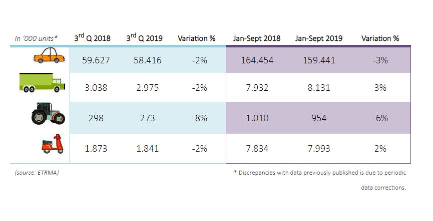 ETRMA: stabili le vendite aftermarket nei primi 9 mesi