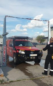 Allo stesso modo, Istobal produce anche archi per la sanificazione esterna di veicoli medici come ambulanze e flotte delle forze dell’ordine con una capacità di sanificazione media di circa 1.000 veicoli al giorno. Questo sistema è progettato per spruzzare i veicoli con biocidi e consente la disinfezione di mezzi anche di grandi dimensioni.