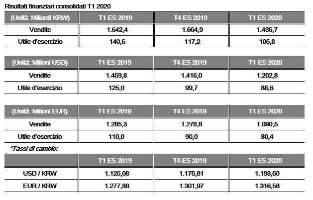 Hankook Tire ha annunciato i risultati finanziari per il primo trimestre 2020 con un fatturato globale consolidato di 1.4357 trilioni di KRW (ca. 1,0905 miliardi di Euro) e un utile d’esercizio di 105.8 miliardi di KRW (ca. 80,4 milioni di Euro).