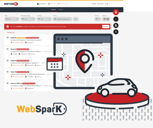 Nell’ottica di garantire sostegno immediato alle concessionarie e agli operatori del post-vendita (officine, ricambisti e carrozzerie), MotorK ha deciso di rilasciare un nuovo prodotto, WebSparK Local. Si tratta di una piattaforma di marketing SaaS che consente ai dealer di ottimizzare la presenza online delle concessionarie in termini di localizzazione e reputazione online.