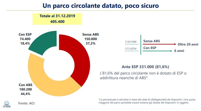 In base ai dati disponibili, dal punto di vista della sicurezza UNRAE ha stimato che l’81,6% del parco rimorchiato circolante in Italia sia privo del sistema di controllo della stabilità (ESP) e il 37,2% non abbia i dispositivi di assistenza alla frenata (ABS).