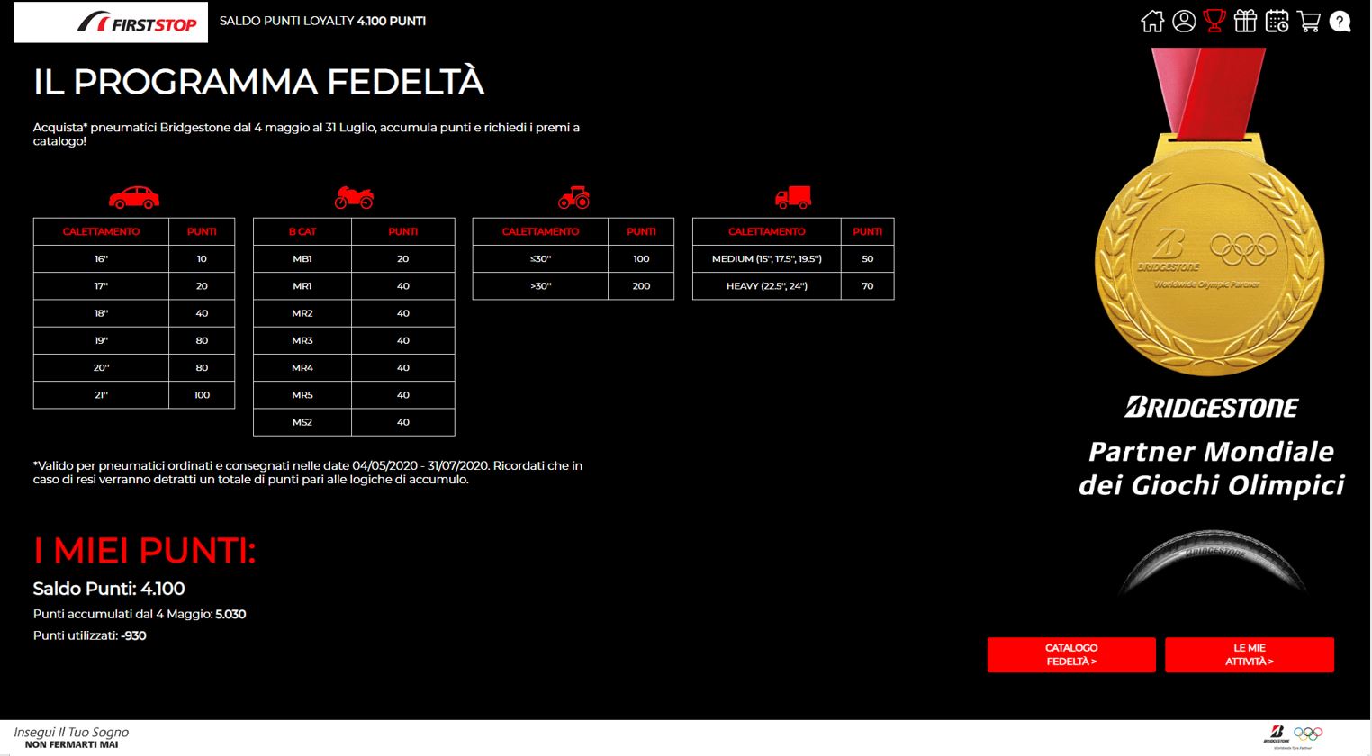 Solo i partner della Rete First Stop potranno accumulare punti loyalty per ogni acquisto di pneumatici vettura, moto, truck e agricoltura.