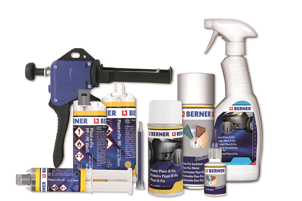 I produttori di autoveicoli utilizzano sempre più parti in plastica nell’assemblaggio dei veicoli. I vantaggi sono evidenti: il materiale è economico, leggero e non arrugginisce. Con la nuova gamma Plast-O-Fix, Berner offre ora ai professionisti del settore automobilistico una nuova soluzione adesiva per riparare tutti i tipi di plastica, compresi PE, PP e ABS. Grazie a questi prodotti, i professionisti riescono a risparmiare tempo prezioso, perché crepe, fratture ecc. possono essere riparate direttamente dall’officina.