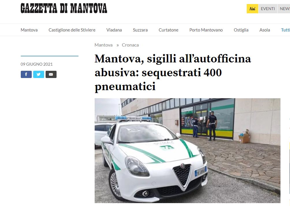 Officina abusiva a Mantova: multa e 400 pneumatici sotto sequestro