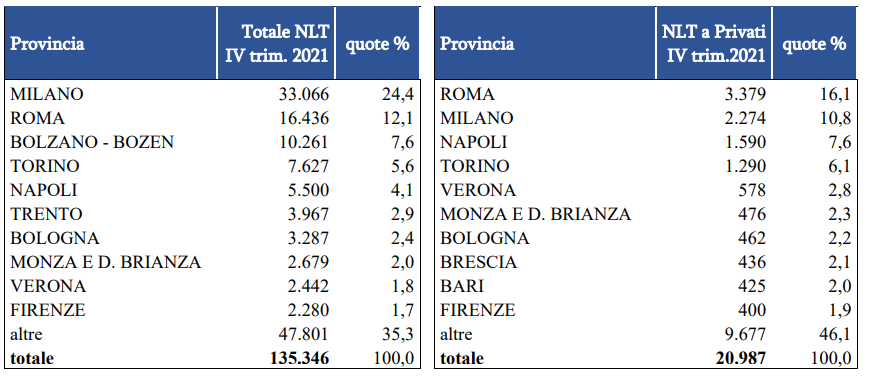 A livello geografico, il noleggio a lungo a privati supera il 45% di penetrazione sul totale NLT in Calabria, seguono Puglia e Molise con oltre il 30%. Il Trentino Alto Adige si colloca all’ultimo posto con l’1%.