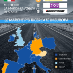 ● Su scala europea, l’omino Michelin domina la classifica superando i suoi concorrenti in 10 Paesi sui 14 esaminati. Invece, la marca Continental è il brand più richiesto in Germania e in Portogallo. Pirelli, che festeggia i suoi 150 anni, domina il mercato inglese. In Austria, il manifatturiere Nexen, vincitore a sorpresa, si trova in pole-position tra le marche per pneumatici più popolari.
