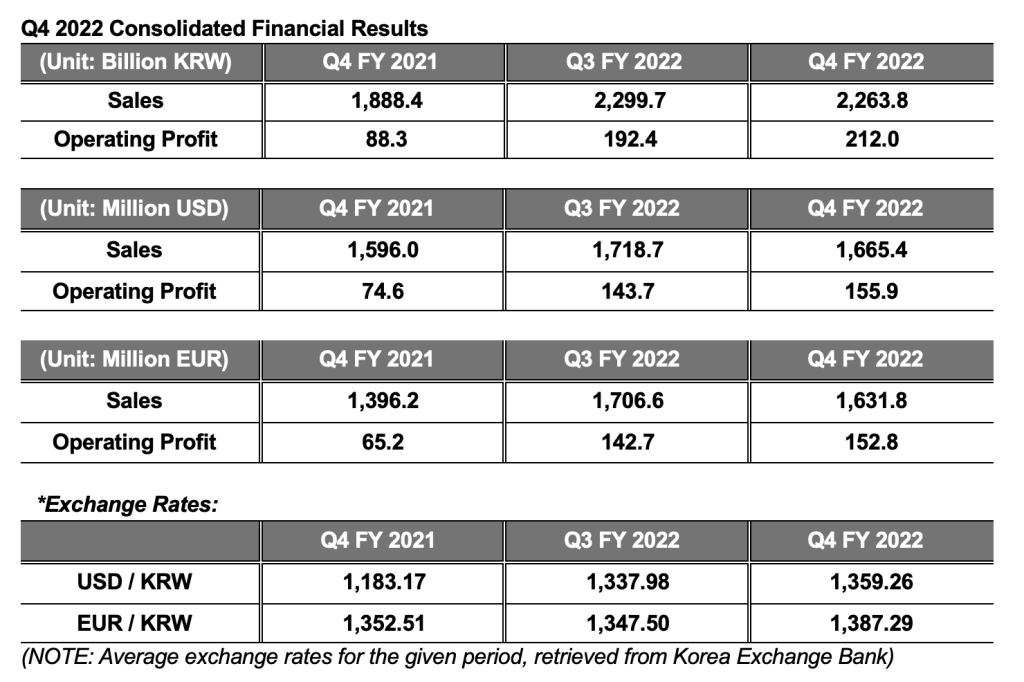 Hankook ha annunciato i risultati finanziari per il 2022 con vendite globali consolidate al massimo storico di 8.394,2 miliardi di KRW (circa 6.184,3 milioni di euro). L’utile operativo si è attestato a 705,7 miliardi di KRW (circa 519,9 milioni di euro). Le vendite e l’utile operativo sono aumentati su base annua rispettivamente del 17,5% e del 9,9%.