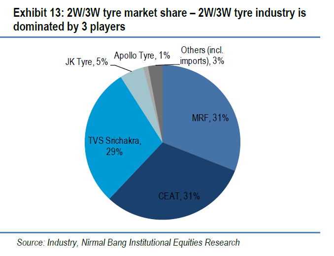 Si dice anche che l’azienda abbia perso terreno nel segmento due ruote. Il fatto che “questo ha portato a migliorare la disciplina dei prezzi nel settore” suggerisce che MRF non era troppo ambiziosa con i livelli di prezzo con cui storicamente ha guidato il mercato.