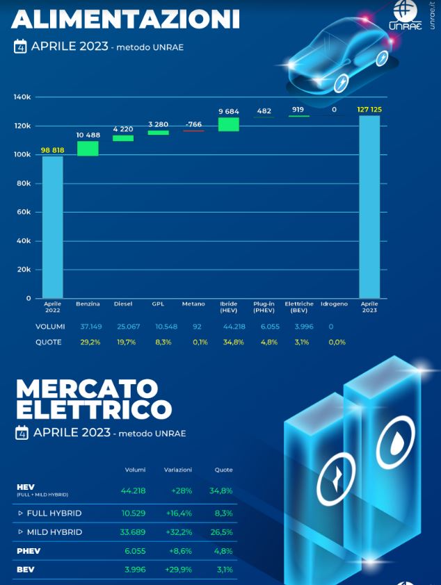 Considerando l’elevata performance del primo trimestre, +26,2% sul 2022 (ma -20,6% sul 2019), e in particolare il notevole contributo del mese di marzo (+40,8%), la stima UNRAE per il 2023 viene rivista al rialzo, prevedendo per fine anno 1.470.000 immatricolazioni, in crescita dell’11,6% sul 2022 (ma ancora in calo del 23,3% sul 2019).