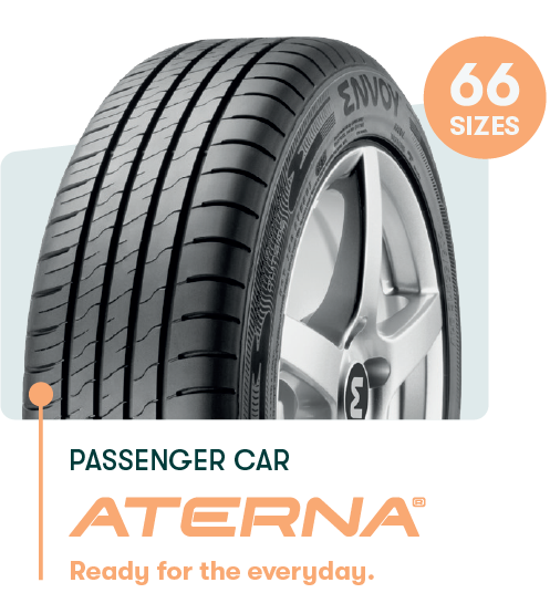 Aterna: pensato per l’uso quotidiano, Aterna è un pneumatico affidabile per auto compatte. Offre efficienza nei consumi, bassa rumorosità e una guida più fluida, rendendo ogni tragitto più confortevole.