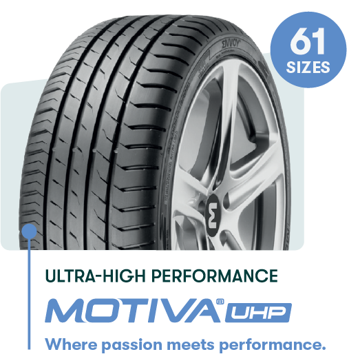Motiva UHP: dove la passione incontra la performance: Motiva UHP è uno pneumatico ultra-high performance che garantisce massima aderenza, risposta precisa dello sterzo, maneggevolezza ad alta velocità e trazione anche su strade bagnate.