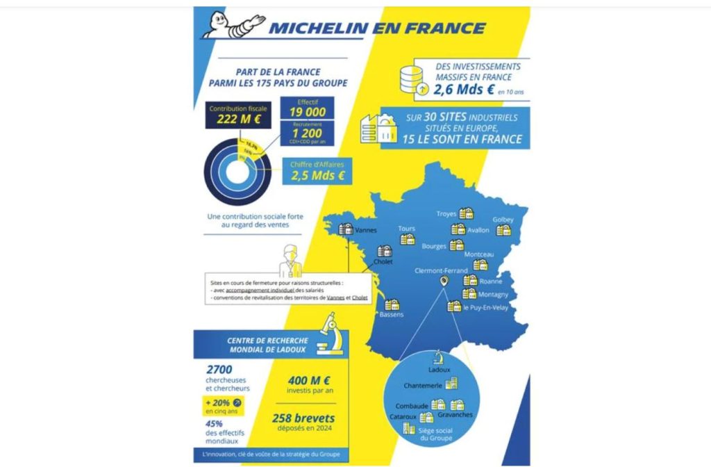 In generale, i pregiudizi del rapporto non riflettono la concretezza dell’impegno di Michelin nei confronti della Francia. Michelin ha investito 2,6 miliardi di euro nel Paese negli ultimi dieci anni, di cui 1,5 miliardi di euro per modernizzare i suoi impianti industriali.