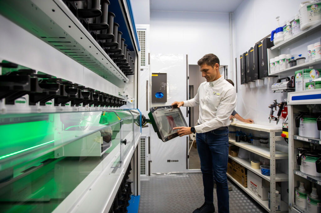 - Tintometro semi-automatico MOON-WALK, per ottimizzare il ciclo di riparazione nella fase di preparazione delle tinte, garantendo una gestione più efficiente dei tempi di lavorazione.