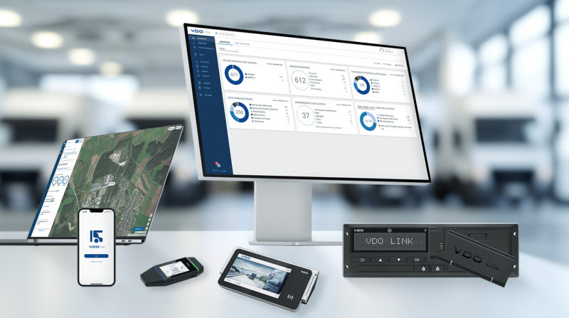 Il sistema è particolarmente comodo se usato in combinazione con VDO Link: la piccola soluzione telematica Plug & Play si collega semplicemente all’interfaccia frontale del tachigrafo e trasmette tutti i dati in tempo reale — senza la necessità di visite aggiuntive in officina.