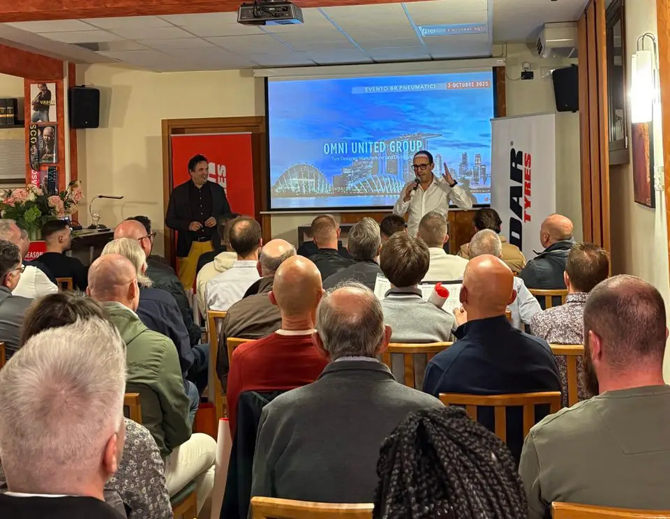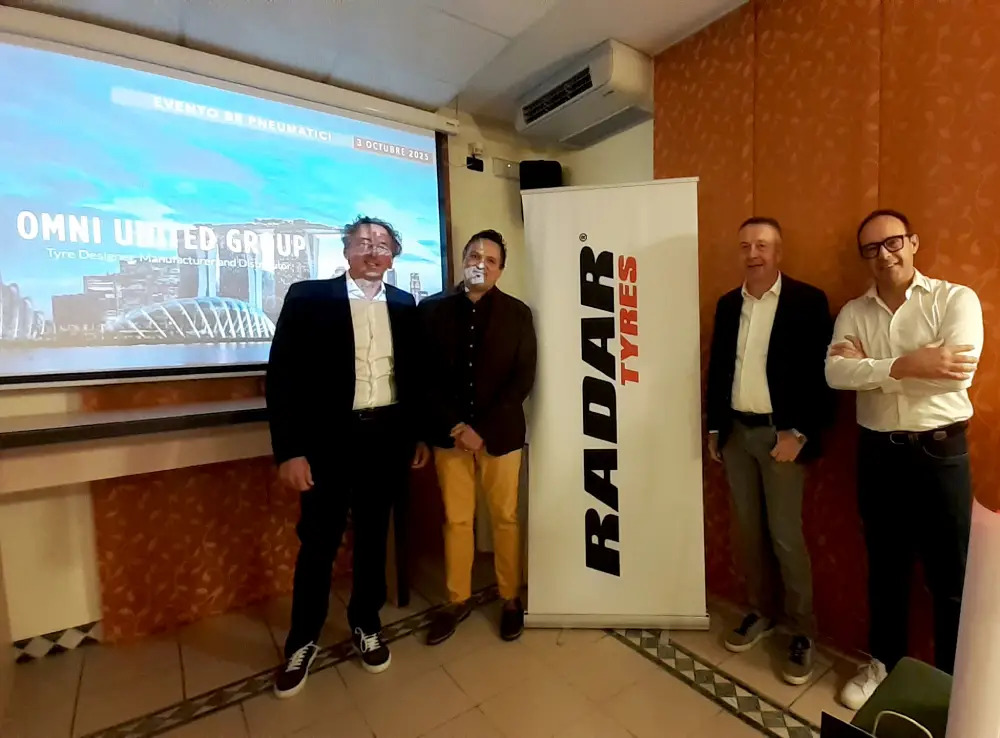 Si è tenuto venerdì 3 ottobre 2025 un esclusivo Product Marketing Meeting organizzato da BR Pneumatici e Omni United, l’azienda proprietaria del brand Radar Tires (nella foto in alto, da sinistra: Joao Oliveira, Fabrizio Manfredi e Michael Cati di Omni United, Andrea Busin e Stefano Busin di BR). L’evento ha riunito oltre 50 operatori del settore, confermandosi l’occasione ideale per presentare la strategia globale e la filosofia del brand e per ribadire l’impegno nel portare sul mercato il concetto di “pneumatico premium accessibile”.