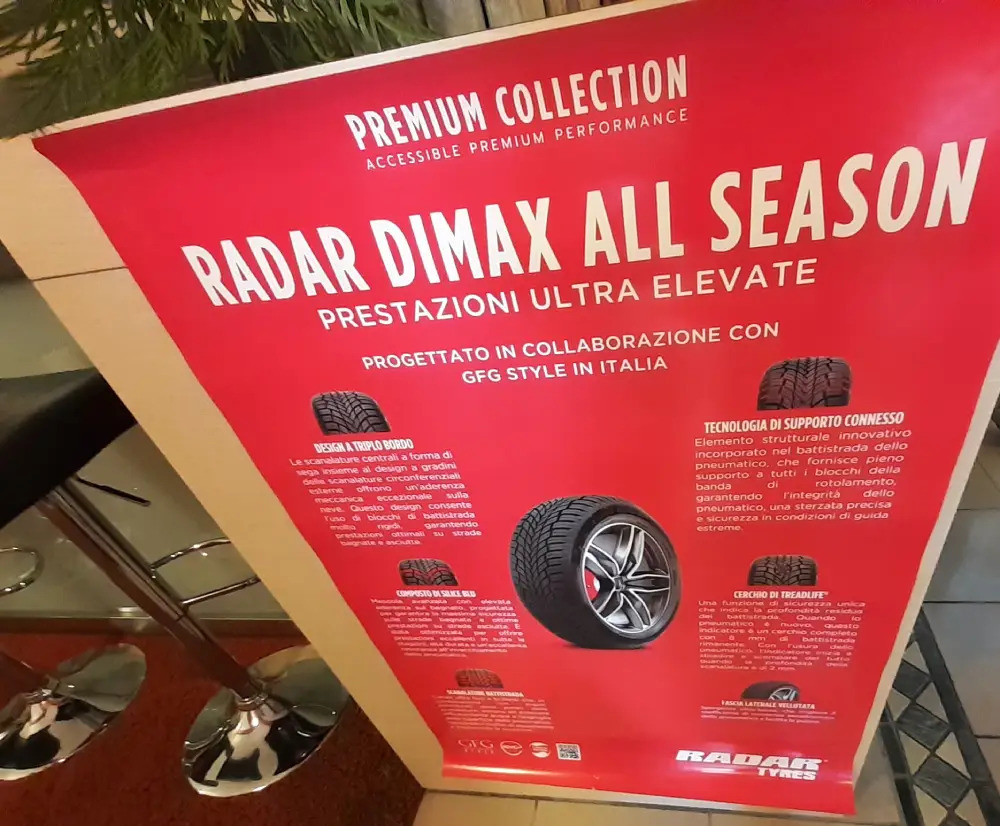 - Prestazioni comprovate: test indipendenti presentati dal produttore dichiarano che i pneumatici Radar offrono prestazioni superiori al 95% rispetto ad altri marchi premium, coprendo inoltre il 90% di tutti i segmenti chiave del mercato.