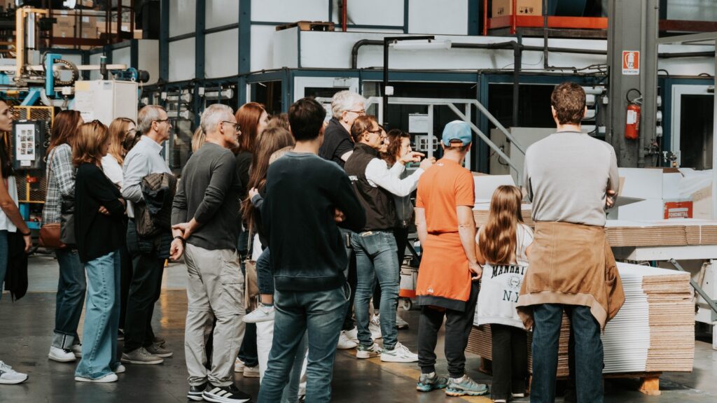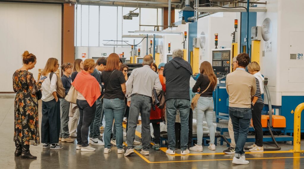 Un flusso continuo di persone provenienti non solo dalla provincia, ma anche da altre regioni, attratte dal fascino di un marchio che ha saputo coniugare nel tempo innovazione, design e tradizione manifatturiera italiana.