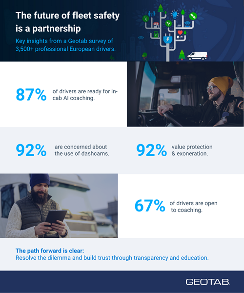 Sondaggio Geotab: l’87% dei conducenti professionisti è pronto ad adottare il coaching basato sull’AI in cabina