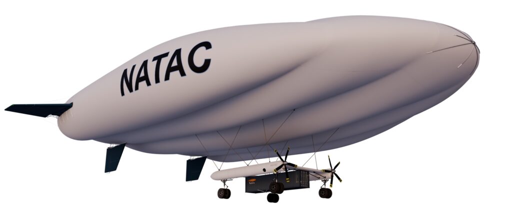 L’involucro alare è una delle caratteristiche più innovative del NATAC, a causa dei notevoli vincoli tecnici a cui è soggetto. Suddiviso in cinque lobi, l’involucro ha un volume totale di 25.000 m³ e arriva piegato sul sito di lancio prima di essere gonfiato. La sua geometria è mantenuta da un sistema di pulegge che ne varia il volume regolandone la forma aerodinamica a diverse altitudini. Oltre a questa tensione interna, l’involucro deve resistere a significativi carichi esterni derivanti dai cavi che trasportano il carico (fino a 30 tonnellate), alle sollecitazioni meccaniche causate dalla pressione di gonfiaggio su un’ampia superficie (8.000 m²) e al requisito di rimanere impermeabile all’elio e, in ultima analisi, all’idrogeno.