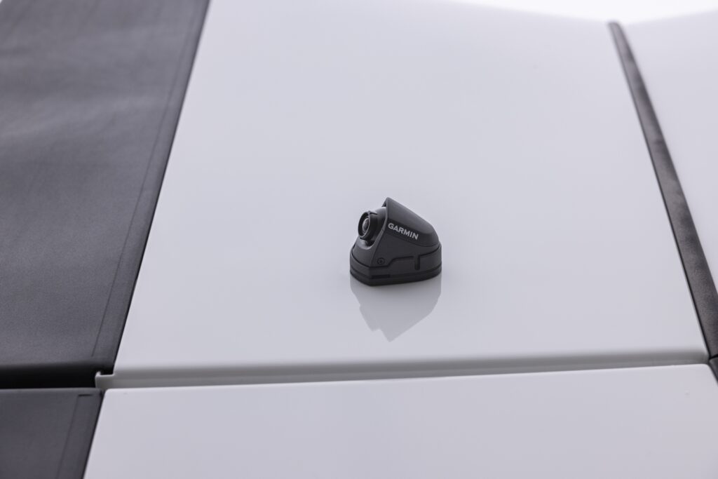 - Il sistema a doppia telecamera che consente una visione live di entrambi i lati del camion e offre una consapevolezza assoluta di ciò che accade intorno al veicolo; le immagini sono visualizzabili in cabina su un navigatore satellitare Garmin compatibile o su un tablet abbinato.