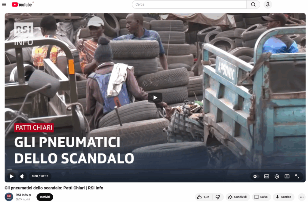 Un’indagine durata un anno, condotta dalla trasmissione “Patti Chiari” (RSI), ha portato alla luce un preoccupante mercato parallelo di pneumatici fuori uso che, invece di essere smaltiti correttamente in Svizzera, finiscono illegalmente in Africa, alimentando scempi ambientali e rischi per la salute pubblica.
