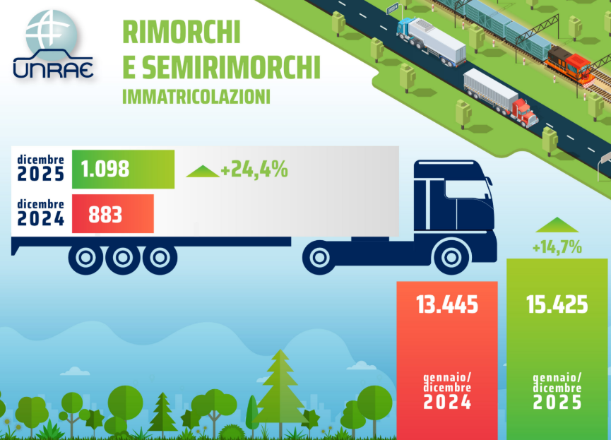 Rimorchi in crescita a dicembre (+24,4%), il 2025 chiude +14,7%