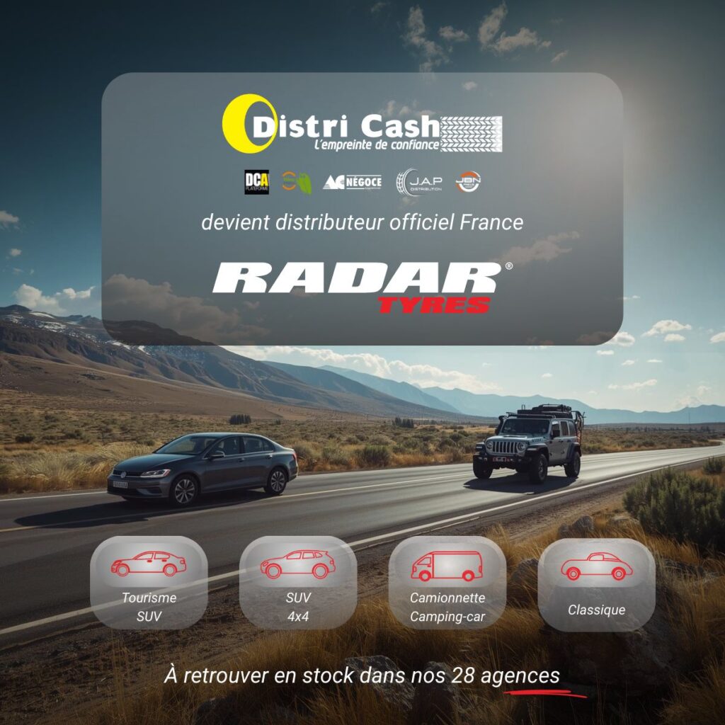 Distri Cash è diventato il distributore ufficiale francese del marchio di pneumatici Radar Tires. Il brand di Omni United andrà ad ampliare la gamma offerta da Distri Cash, con la sua gamma completa che include anche 4×4 e camper e con il suo interessante equilibrio tra prestazioni e prezzo. I pneumatici Radar saranno disponibili nelle 28 sedi del distributore, grazie alla sua logistica e al supporto commerciale offerto.