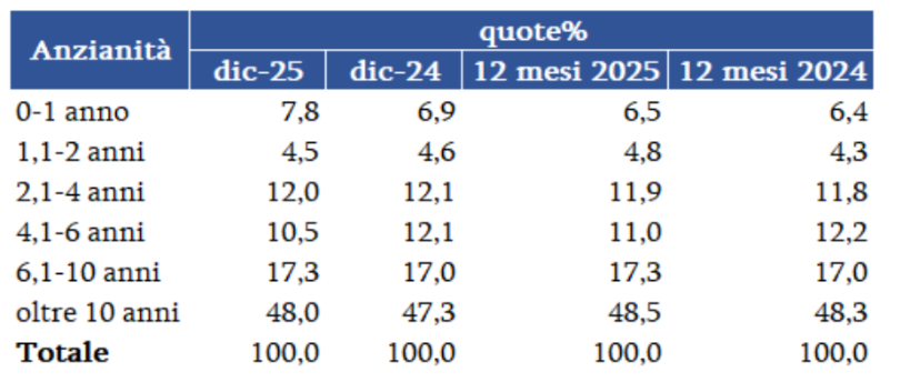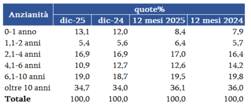 Usato anno 2025 vs Circolante al 31.12.2024 per Anzianità