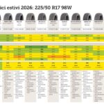 I tre modelli che conquistano il podio sono tutti premium: Continental, Pirelli e Goodyear, mentre i tre finiti in fondo alla classifica sono i budget Lassa, Leao e Linglong. Al centro, classificati come “consigliati”, ci sono dieci pneumatici di vario tipo.