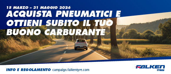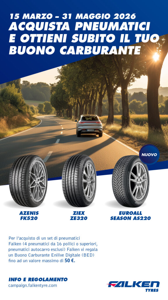 Continua anche nel 2026 la tradizionale promozione Falken “Acquista i pneumatici e ottieni il buono carburante”, annunciando la stagione estiva del cambio gomme.