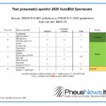 Il grande successo è lo SportContact 7 di Continental, che è stato criticato solo per la sua leggera resistenza al rotolamento. Per il resto, è stato descritto come un “re della maneggevolezza con prestazioni eccezionali sia sul bagnato che sull’asciutto”, caratterizzato da spazi di frenata eccezionalmente brevi e da una risposta precisa dello sterzo. La ricompensa per questo impegno: una valutazione complessiva di “esemplare” condivisa anche dal Potenza Sport Evo di Bridgestone, al secondo posto. Questo pneumatico è stato criticato per la sua leggera resistenza al rotolamento, con la rumorosità in transito indicata come ulteriore punto debole. A parte questo le sue prestazioni sono state impeccabili, perchè il prodotto giapponese è “dinamico con maneggevolezza sportiva sul bagnato e sensazione di sterzo precisa” ed è stato particolarmente elogiato per i suoi brevi spazi di frenata sull’asciutto e le caratteristiche di guida complessivamente sicure.