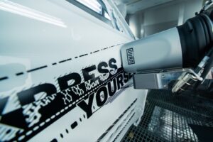Inoltre, partendo dall’’EcoPaintJet Pro per applicazioni bicolore senza overspray e senza mascheratura, Dürr sta introducendo anche l’EcoNextJet che consente l’applicazione di grafiche personalizzate ad alta risoluzione tramite stampa digitale direttamente sulla scocca.