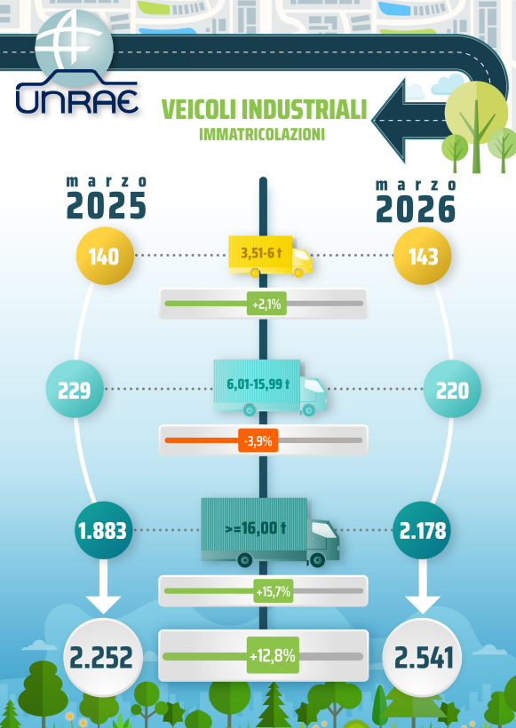 Il Centro Studi e Statistiche UNRAE – sulla base dei dati di immatricolazione forniti dal Ministero delle Infrastrutture e dei Trasporti – ha effettuato una stima del mercato dei veicoli industriali per il mese di marzo 2026: