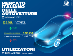 Mercato auto: gennaio +19,0% Unrae conferma previsione 2023 con 1,4 milioni di auto (+6,3%)