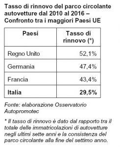 In Italia dal 2010 al 2016 il tasso di rinnovo del parco circolante di autovetture è stato del 29,5%, un …