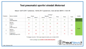 Test pneumatici moto sportivi stradali: Dunlop davanti a Michelin e Pirelli