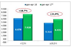 Il mercato dei veicoli industriali nel primo quadrimestre cresce del 18,7%