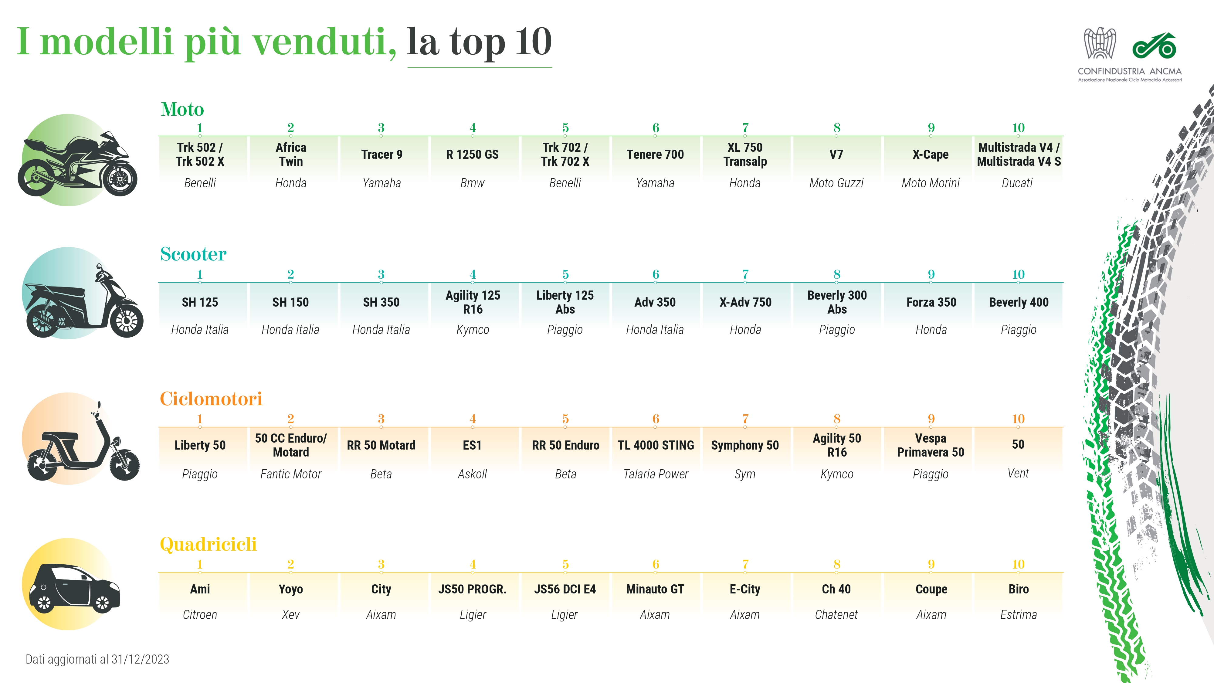 Mercato moto: le immatricolazioni 2023 volano a + 15,7%